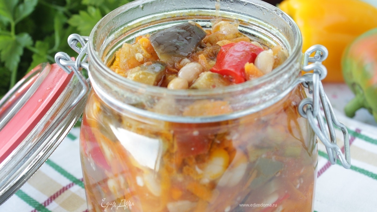 Салат с баклажанами и фасолью
