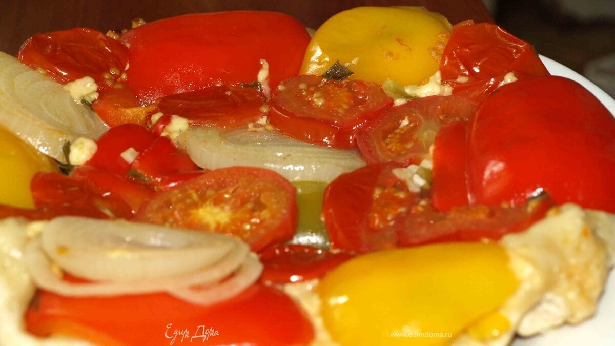 Овощной тарт с помидорами, болгарским перцем, луком