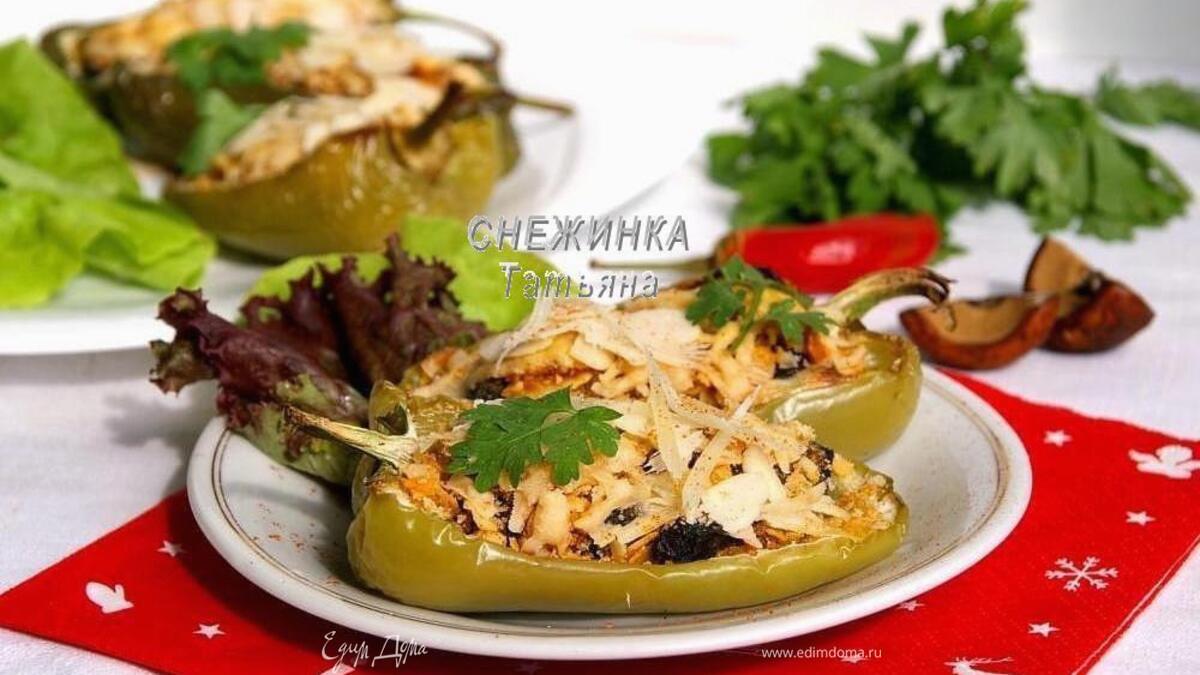 Перцы, запеченные с грибами под шапочкой из миндаля и сыра Джюгас