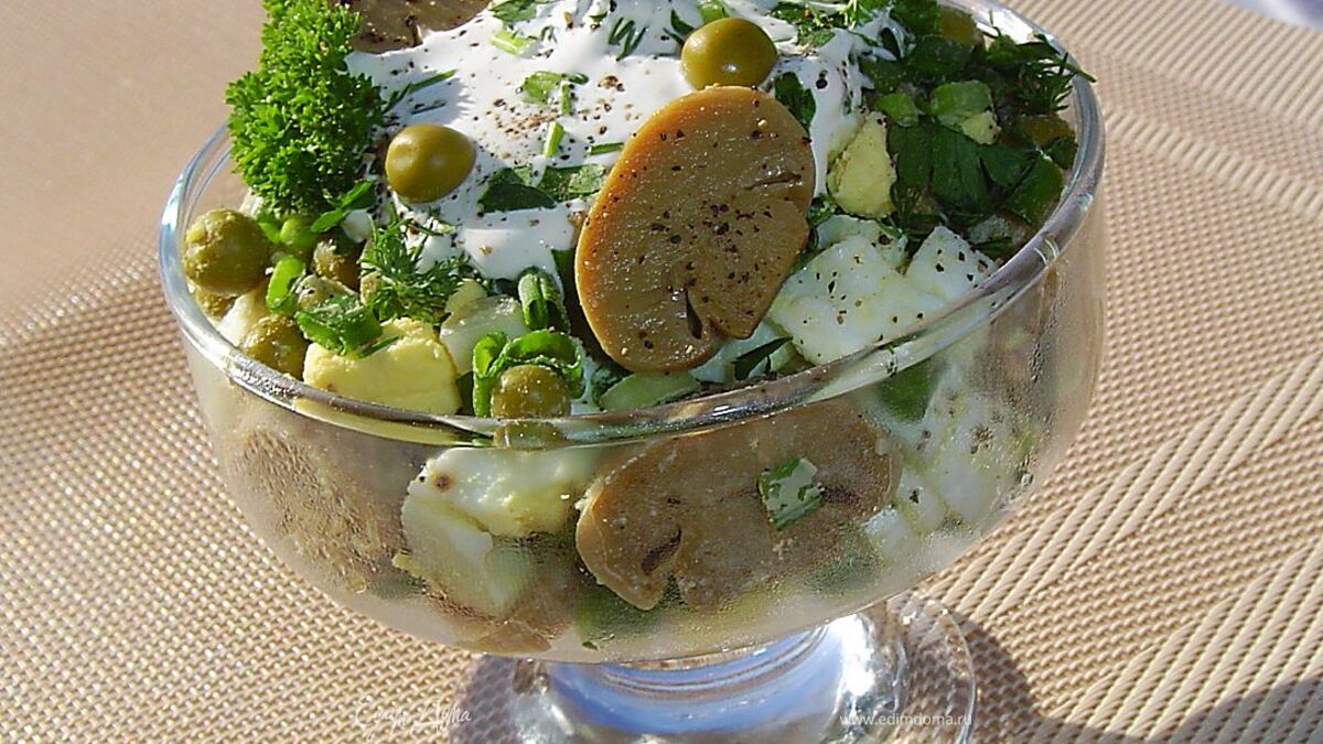 Салат из шампиньонов и зеленого горошка