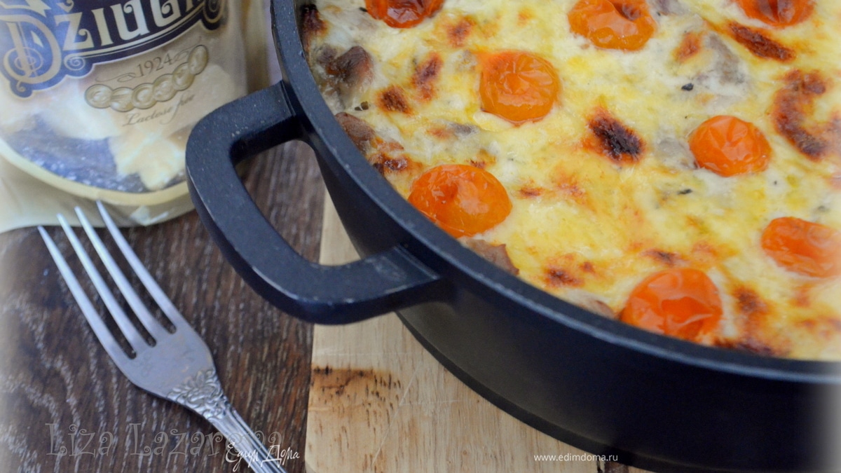 Куриная запеканка из спагетти под корочкой из сыра джюгас