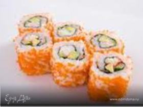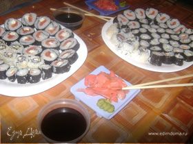 Нарезать ким паб. Я предпочитаю нарезать под углом, но можно и кругляшами. Можно сразу подавать, при желании с соевым соусом и васаби, но можно и без них.