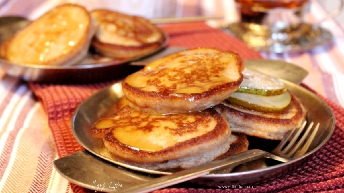 Гречнево-ржаные оладьи с грушей и медовым кремом