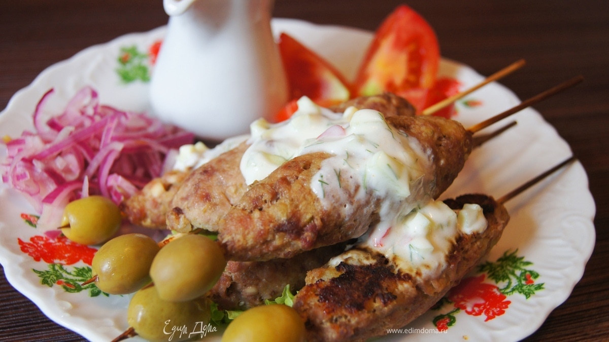 "Быстрый" люля-кебаб с дзадзики и маринованным луком