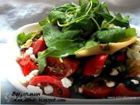 Новый взгляд на всеми любимый итальянский салат. Обожаю запеченную моцареллу, этот сыр как будто создан для того, чтобы расплавиться)) Его ниточки так вкусно тянутся!