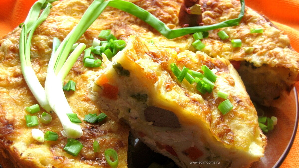 Лазанья с курицей и печенкой