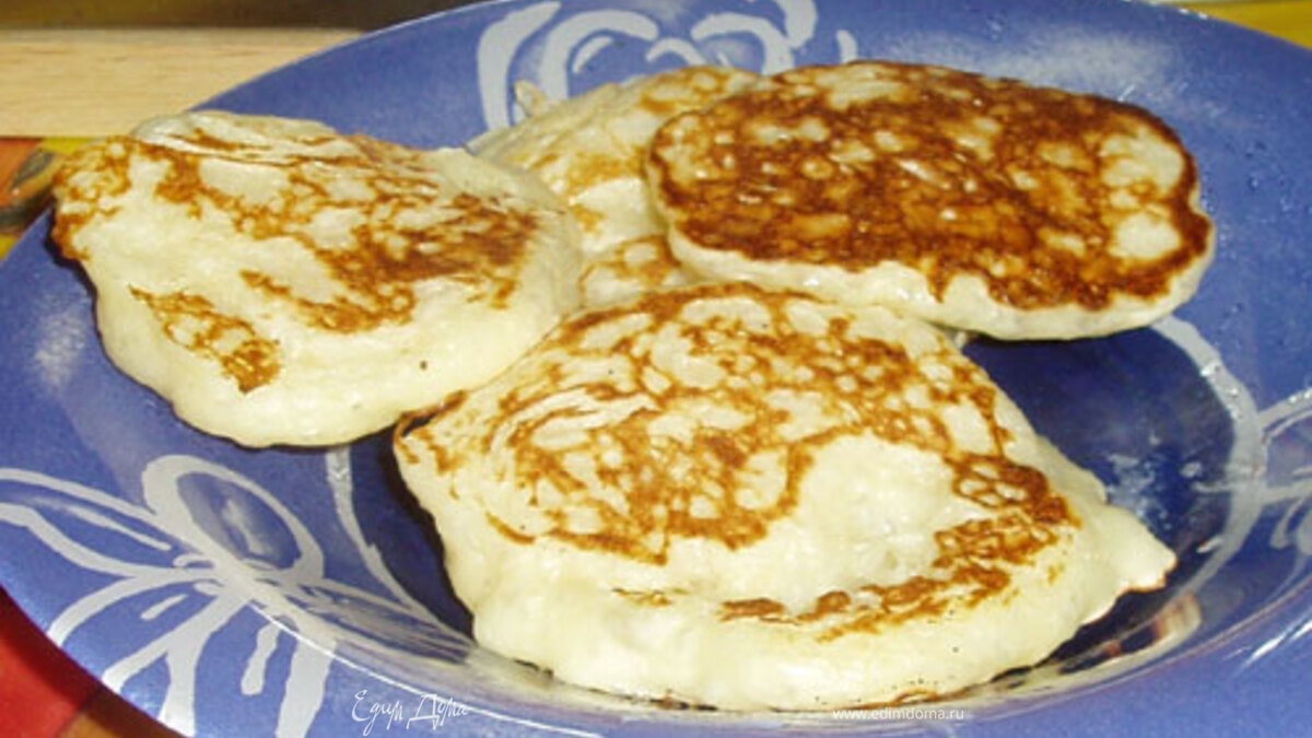 - Шаг 1Развести дрожжи в теплом молоке, всыпать муку и вымесить. Тесту дать подняться в теплом месте. Потом положить яйца, соль, сахар и столовую ложку коровьего или растительного масла, вымесить, дать тесту вторично подняться и, не размешивая его, брать смоченной в воде ложкой, класть на горячую сковороду с маслом и поджаривать оладьи с обеих сторон. Я сменила сахар на мед. Вкусно.