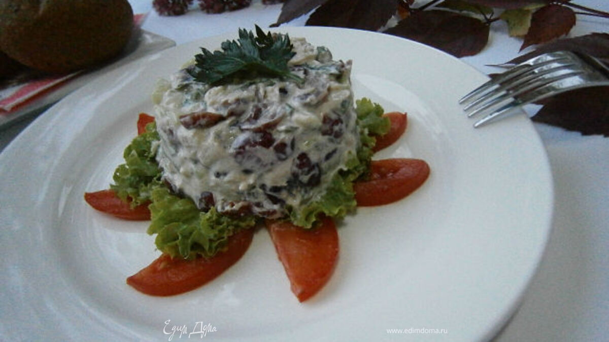 - Шаг 3Готовый салат украсить листом салата помидором и зеленью сельдерея. Приятного аппетита!