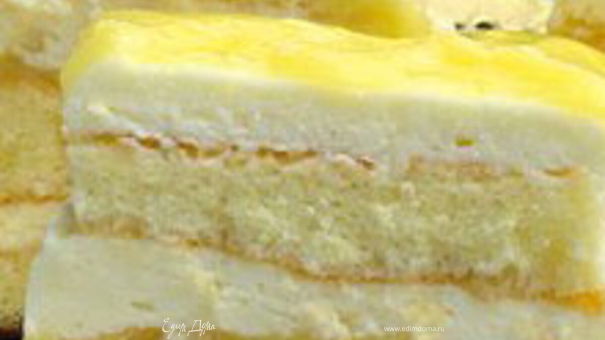 - Шаг 1Бисквит. Разогреть духовку до 170С. Застелить противень пергаментной бумагой ( 51X35 см). Белки взбить с винным камнем на небольшой скорости до образования пены, постепенно добавляя половину нормы сахара. Увеличить скорость, и взбивать до устойчивых пиков. Желтки взбить с оставшимся сахаром до получения светло-желтой, почти белой массы, добавить ванилин. Муку и крахмал просеять в желтки, добавить 1/3 часть взбитых белков и аккуратно перемешать. Ввести оставшиеся белки, так же перемешивая вращательными движениями. Выкладываем тесто на подготовленный противень, стараясь придать, как можно более ровную поверхность. Выпекать 10-15 мин, проверяя на готовность спичкой. Лимонный мусс. Смешать крахмал с сахаром и вбить туда яйца, растирая, до тех пор, пока не останется комочков. Молоко доводим до кипения. Тонкой струйкой, помешивая яично-крахмальную массу, влить в неё горячее молоко, затем перелить всё обратно в кастрюльку и проварить на медленном огне несколько минут до загустения (до кипения не доводить). Снять крем с огня, переложить в посуду, накрыть плёнкой (касаясь поверхности, чтобы не образовывалась корочка) и полностью охладить. Растворить желатин в холодном лимонном соке и оставить набухать 1 мин. Затем немного нагреть лишь до полного растворения желатина. Взбить миксером остывший заварной крем и , продолжая взбивать, влить сок с желатином. Отдельно взбить сливки и соединить с остальной массой в 3 приема. Лимонный курд. Доведём до кипения лимонный сок, цедру и сахар. Взобъем слегка яйца и тонкой струйкой вольем горячий лимонный сок. Возвращаем всё это на маленький огонь и, помешивая, доводим до кипения. Варим еще минут 5 (постоянно помешивая) до загустения и затем переливаем в чистую посуду, накрываем плёнкой (плёнка должна касаться поверхности крема, чтобы не образовывалась корочка) и остужаем. Сборка. Охлаждённый бисквит разрезать на 3 прямоугольника и покрыть один из них слоем растопленного шоколада. дать шоколаду застыть, перевернуть «шоколадной» стороной вниз и нанести первый слой лимонного мусса (1/3 от всего количества). Разровнять, накрыть следующим слоем бисквита. Промазать половиной лимонного курда и снова слоем мусса. Накрыть последним бисквитом, оставшимся муссом и поместить в морозилку, как минимум на 1 час для застывания. Через это время покрыть поверхность оставшимся курдом и снова заморозить. Из этого рецепта получается много таких пирожных, поэтому я нарезала только половину, а остальное пока заморозила. Они отлично сохраняются в морозилке и не теряют вида и вкусовых качеств после разморозки.