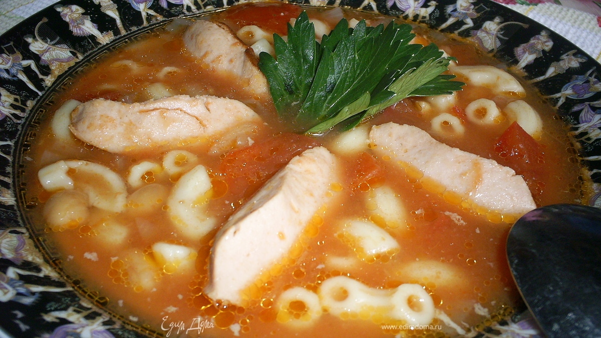 Итальянский томатный суп с сосисками