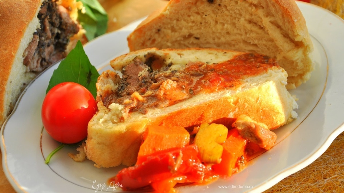 Вот он горячий хлебушек с ягнятиной! Разрез!