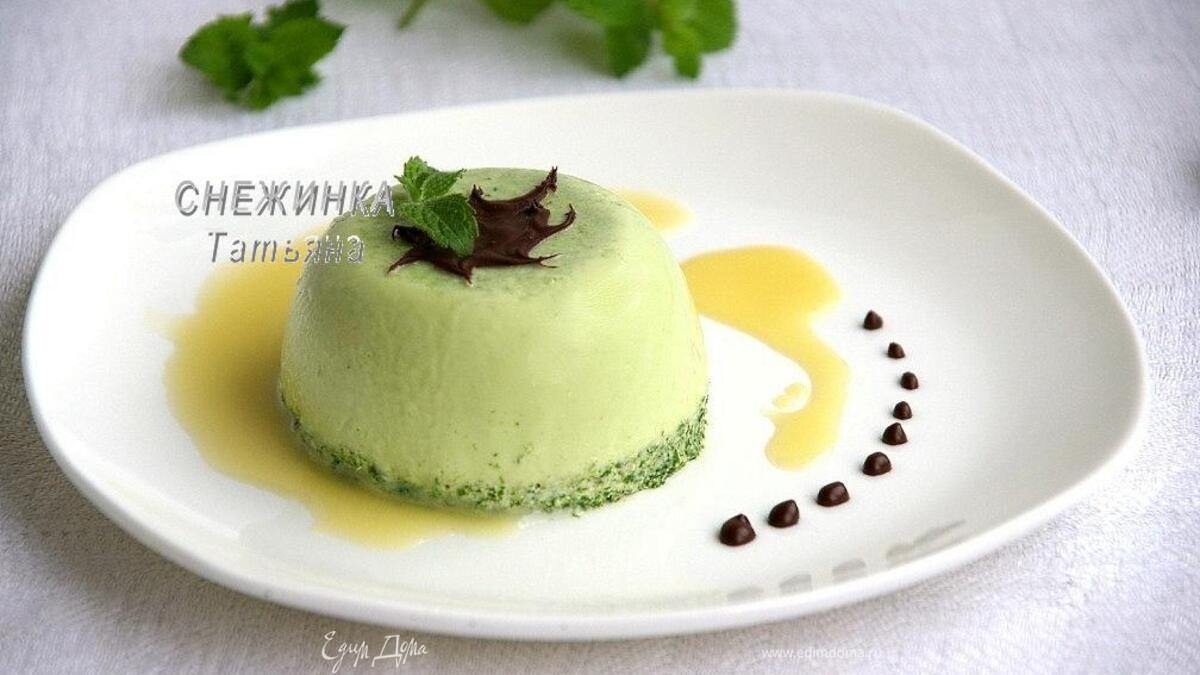 Панна котта с руколой и соусом из белого шоколада