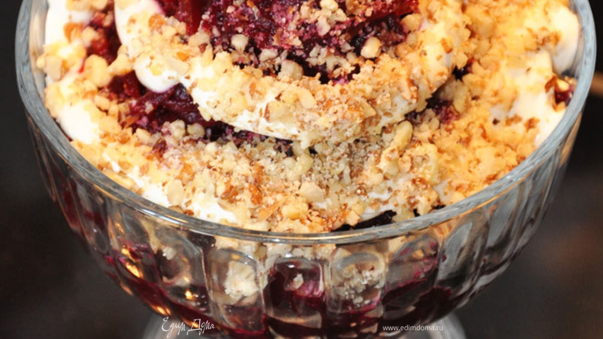 Свеклу натереть на мелкой терке, посолить, смешать с чесноком. - Шаг 1Выложить в вазочку, полить майонезом и посыпать орехами.