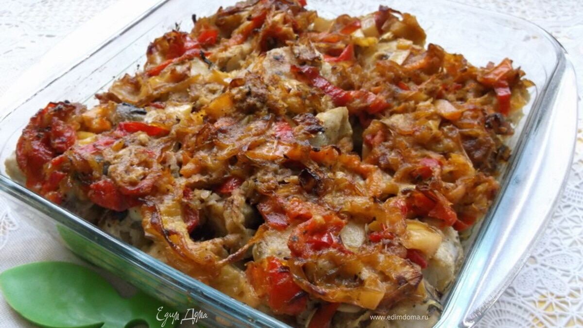 Рыба, жареная с луком и болгарским перцем
