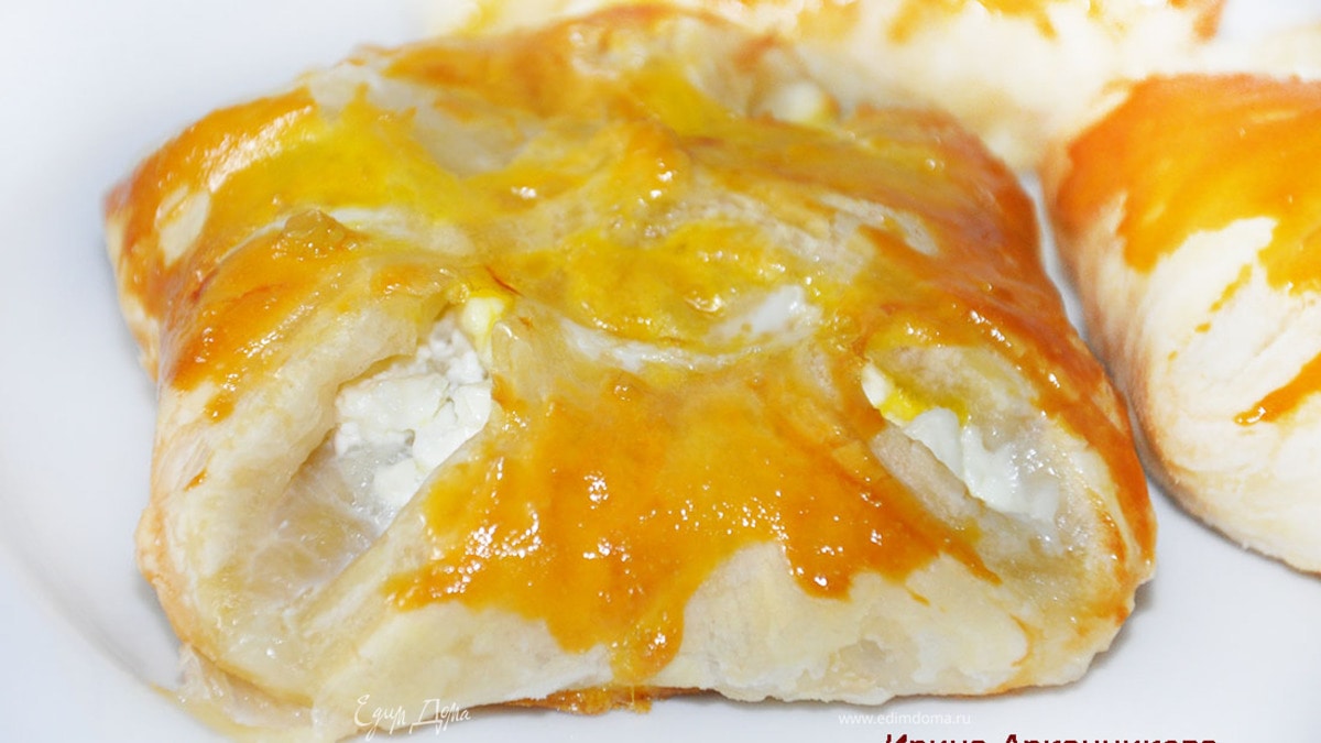 - ПодготовкаЗамороженное слоеное тесто разморозить и нарезать квадратами.