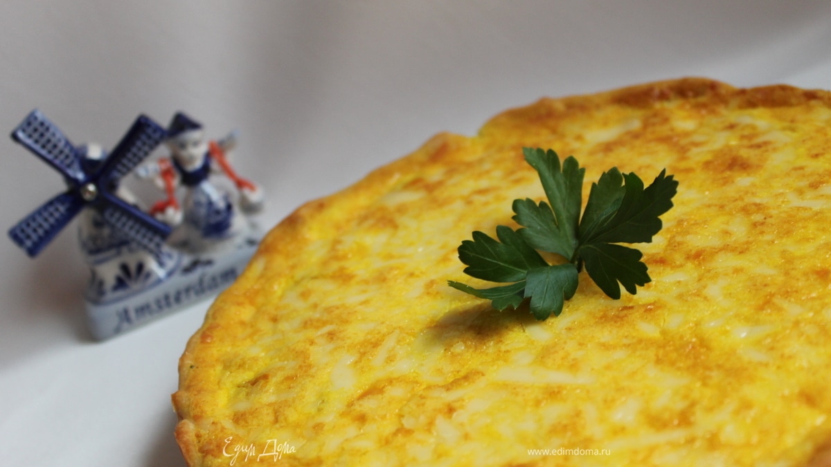 Заливаем кремом, сверху посыпем тертым сыром. Я закрыла верх еще фольгой. Ставим в разогретую духовку на 60 минут при 175 гр. За 20 минут, до окончания, убираем фольгу.