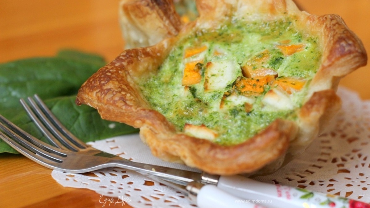 Тарталетки с тыквой и фетой в сливочно-шпинатной заливке