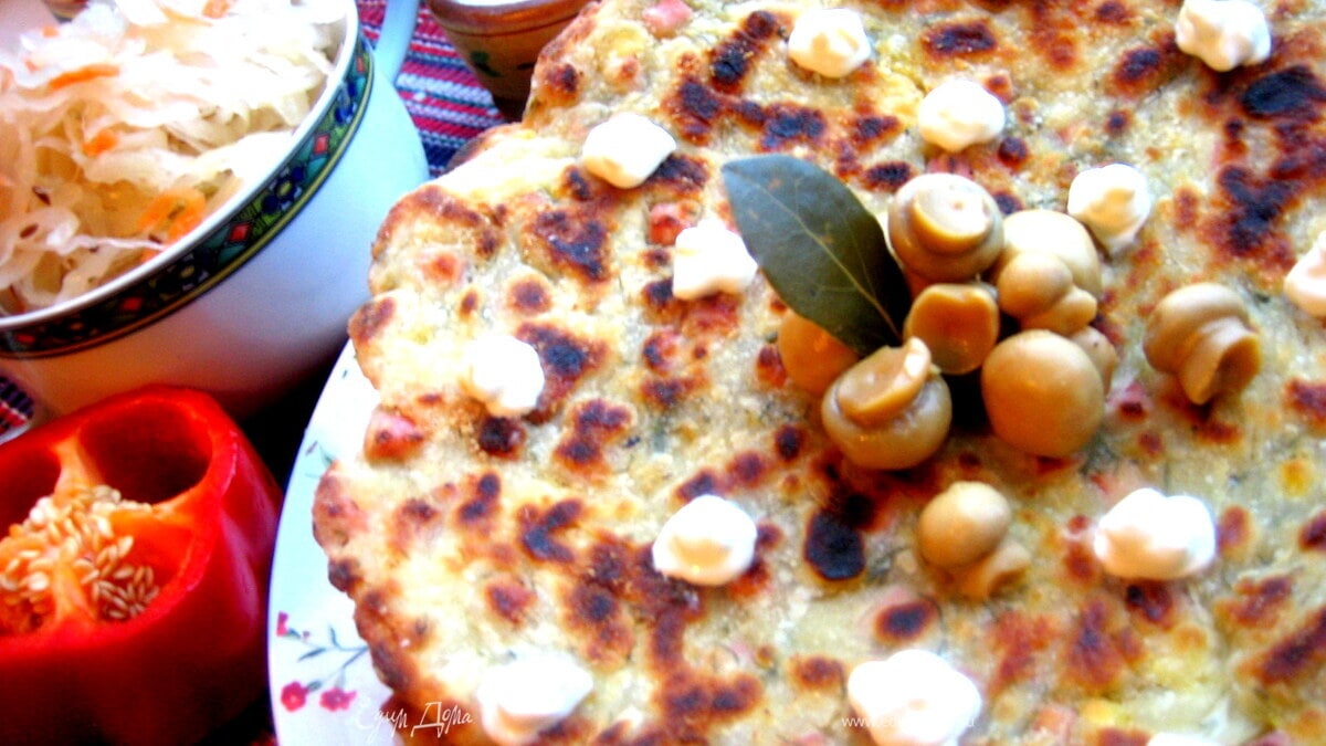 Сырно-тыквенные лепешки с колбасой и зеленью