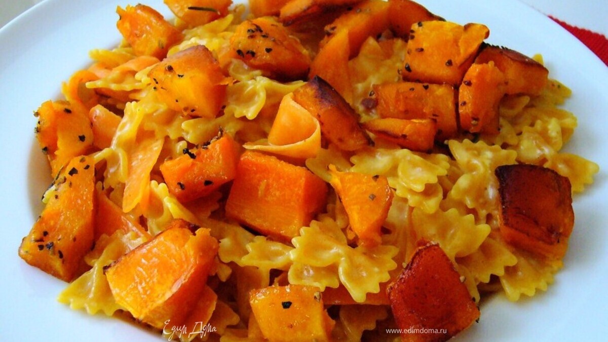 Тыквенно-морковные мини-фарфалле в морковно-сливочном соусе с запеченной тыквой