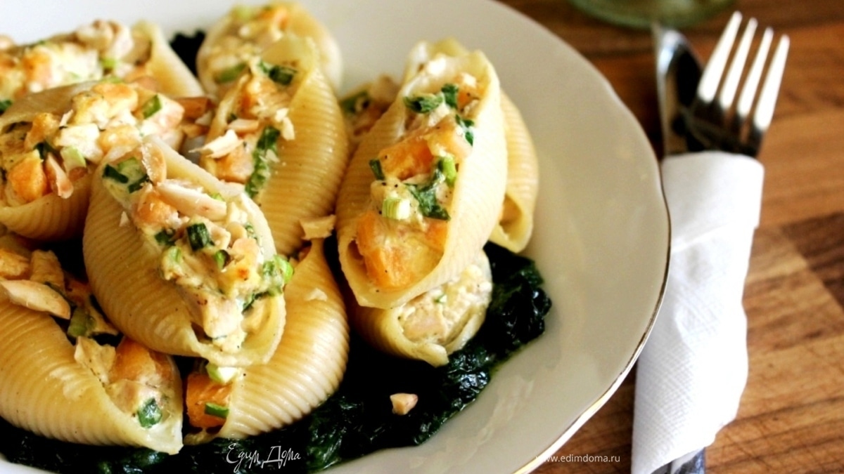 Конкильони с курицей и дыней