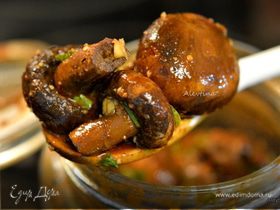 Это что-то совершенно фантастическое: вкусные хрустящие шампиньоны за 10 минут ! (+ минут 5 на холоде). Этот рецепт отличается от других тем, что грибочки не варят и не заливают рассолом, а ЖАРЯТ и добавляют специи, уксус и немного воды прямо в сковороду. Такие грибочки можно делать непосредственно перед приходом гостей. Набор специи можно брать по своему усмотрению. Количество маринованных грибочков рекомендую увеличить (ну очень вкусно), соблюдая пропорции. В общем, это рецепт MUST HAVE каждая хозяйка !