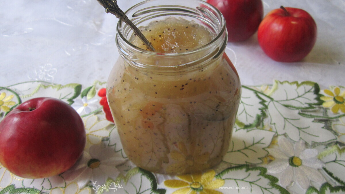 В джем добавить корицу. Довести до кипения и варить, постоянно помешивая, на маленьком огне около 15 минут. Мак обжарить на сухой сковороде, истолочь и добавить к джему. Готовить ещё 5 минут. - Шаг 3