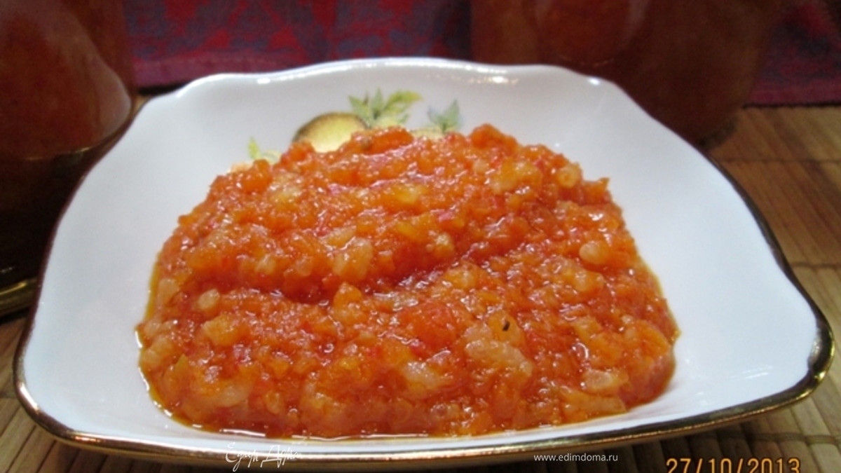 Выкладываем массу в стерильные банки, банки закатываем крышками. Переворачиваем и укутываем чем-нибудь теплым. Вкусная ароматная закуска готова!