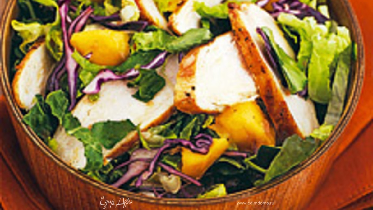 - Шаг 1Посоли и поперчи куриное филе. Обжарь его на растительном масле до появления золотистой корочки — 6 мин. с каждой стороны. Выложи на блюдо и дай остыть. Тем временем мелко нарежь зеленый лук, сбрызни его уксусом и пассеруй в разогретом масле на сковороде около 3 мин. Приготовь соус: смешай в блендере 1 ст. ложку растительного масла, 1 ст. ложку уксуса, соль и перец. Выложи на сервировочное блюдо промытые и нарезанные листья салата, зелень, краснокочанную капусту и сливы. Разрежь куриные грудки на небольшие кусочки и добавь к овощам. Приправь соусом.