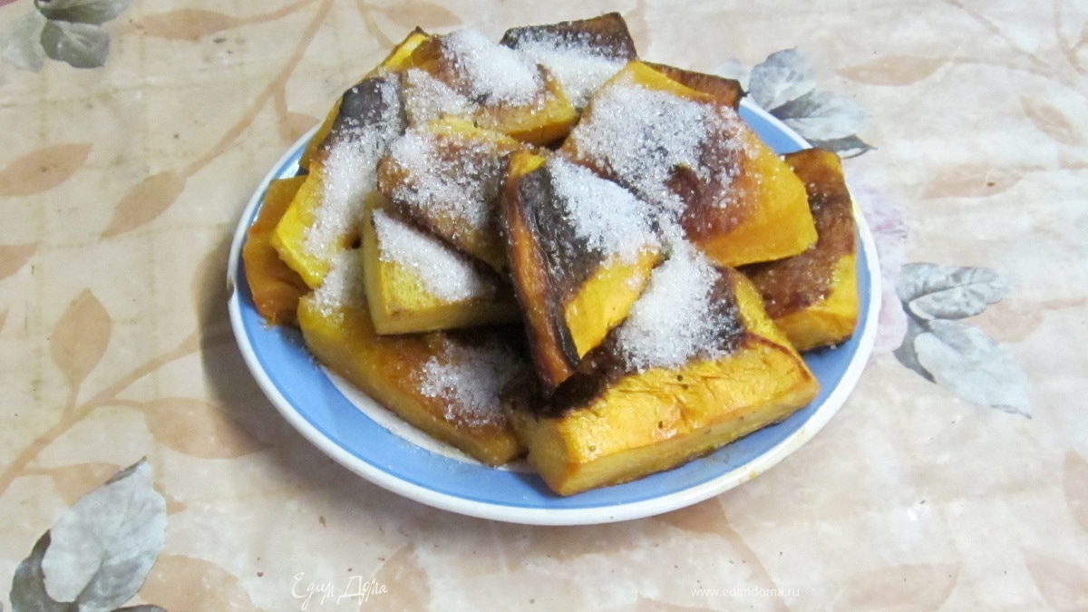 Сладкая тыква, запеченная в духовке с сахаром, может заменить десерт. По желанию тыкву можно полить медом, посыпать корицей или орешками.
