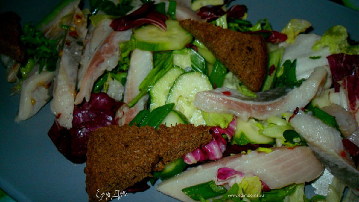 Совсем простенький и быстрый салатик из хрустящих овощей и лично мной любимой селёдочки!