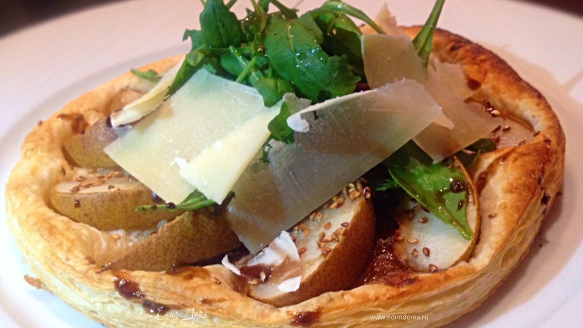 Гато из груши с пармской ветчиной, руколой и пармезаном