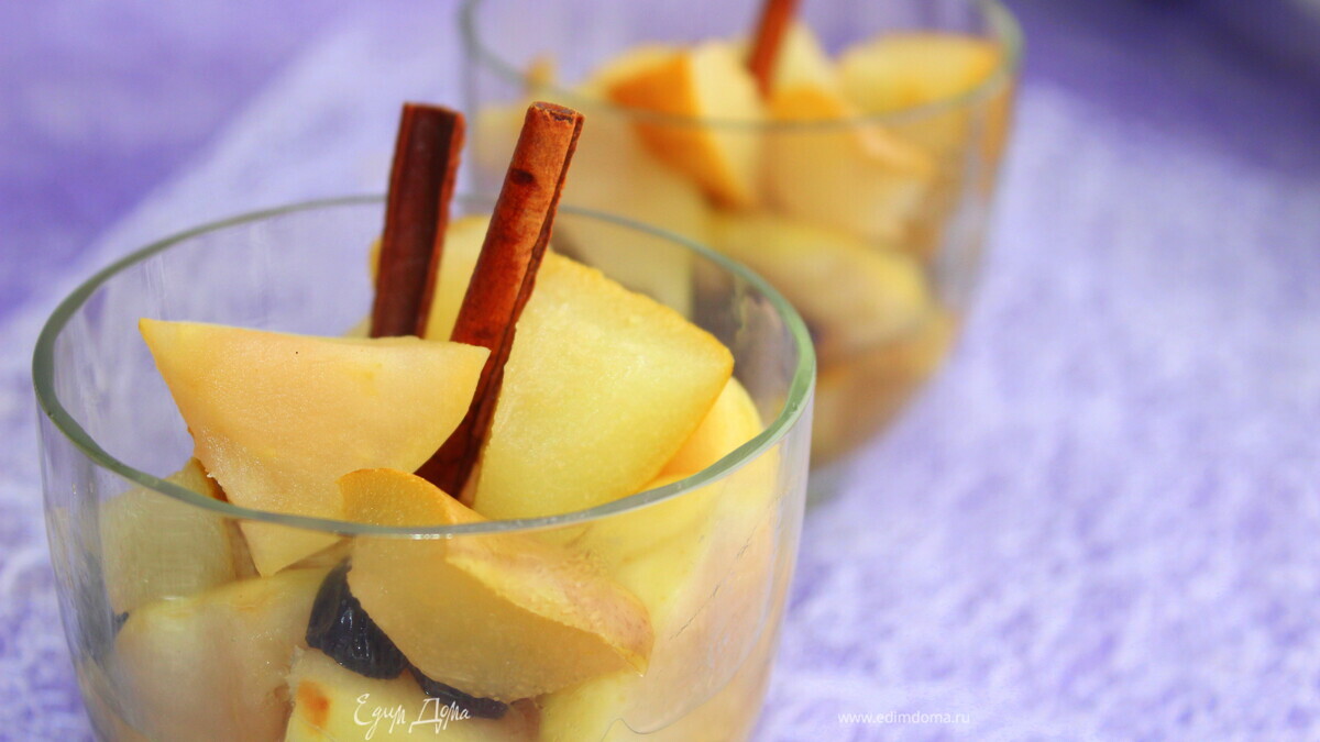 Палочки корицы крупно наломать и добавить к фруктам вместе изюмом и сахаром. - Шаг 3
