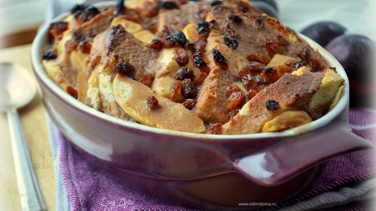 Хлебный яблочный пудинг с белым шоколадом