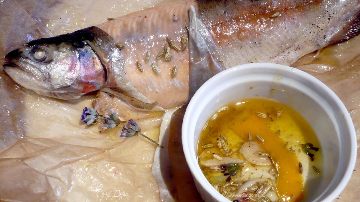 Запеченная озерная форель с лавандой и семенами фенхеля