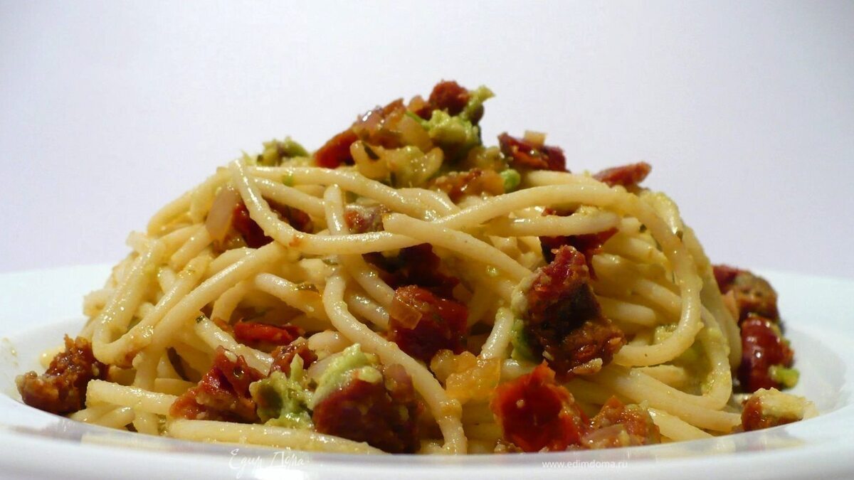 Ценность этого рецепта для меня такова, что, опустив пармезан, рецепт превращается в веганский. Счастью нет предела. Быстро и невообразимо вкусно! Ну, а вдвоём поглощать данный кулинарный шедевр итальянской кухни вдвойне приятней! Не забываем, что авокадо очень полезно для кожи, а вяленые томаты для отличного настрения! Запасаемся улыбками! А делиться впечатлениями будем уже после обеда. Приятного аппетита!