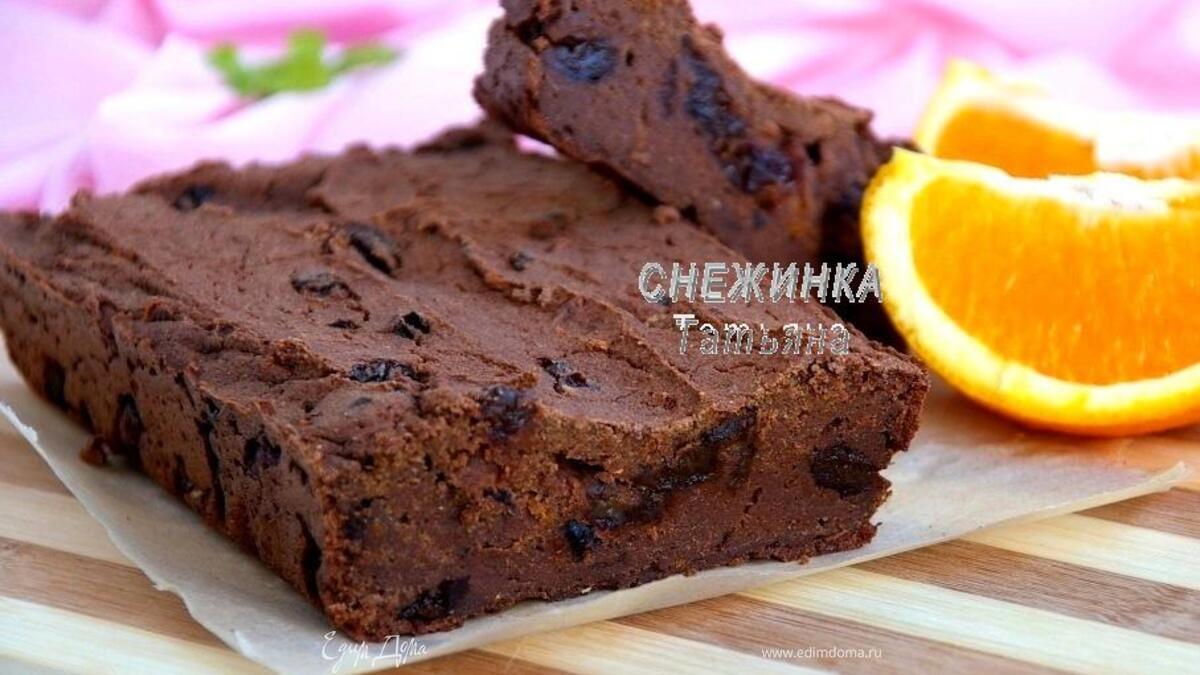 Шоколадный кекс на гречневой муке и тыквенно-апельсиновом соке с черносливом и изюмом