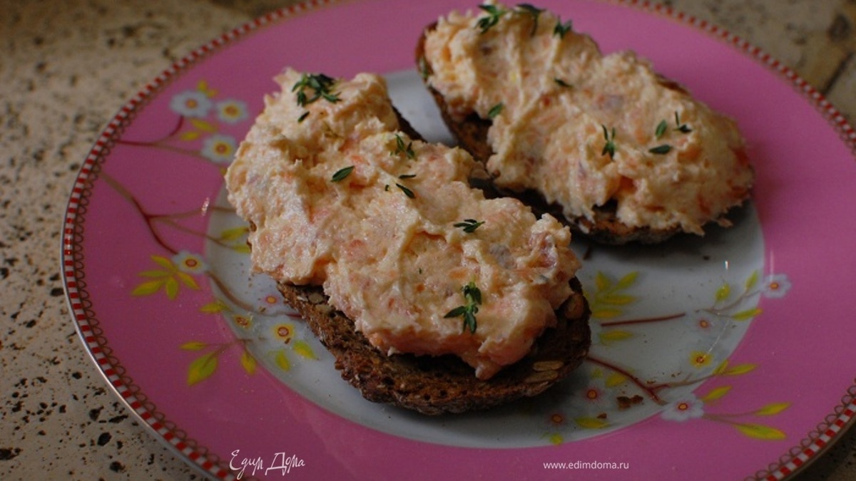 Хлеб берите любой, какой вам нравится, подойдут даже ржаные сухарики или лаваш. Сливочный сыр можно заменить жирной сметаной, а тимьян — укропом.