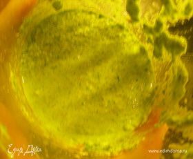 В блендере соединяем 1/4 ч.л. соли, петрушку, орехи, шалфей, лимонный сок, оливковое масло и чеснок. Все взбиваем в однородную пасту. Затем, не выключая блендера, потихонку вливаем бульон и продолжаем взбивать, пока все хорошо не перемешается.