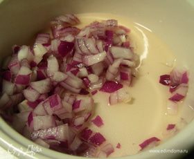 Лук шалот мелко режем. Я его замариновала ненадолго в смеси уксуса с сахаром, но это по желанию.