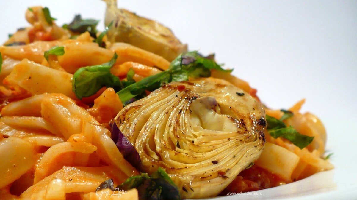 Тальятелле с нежнейшим томатным соусом и жареными артишоками
