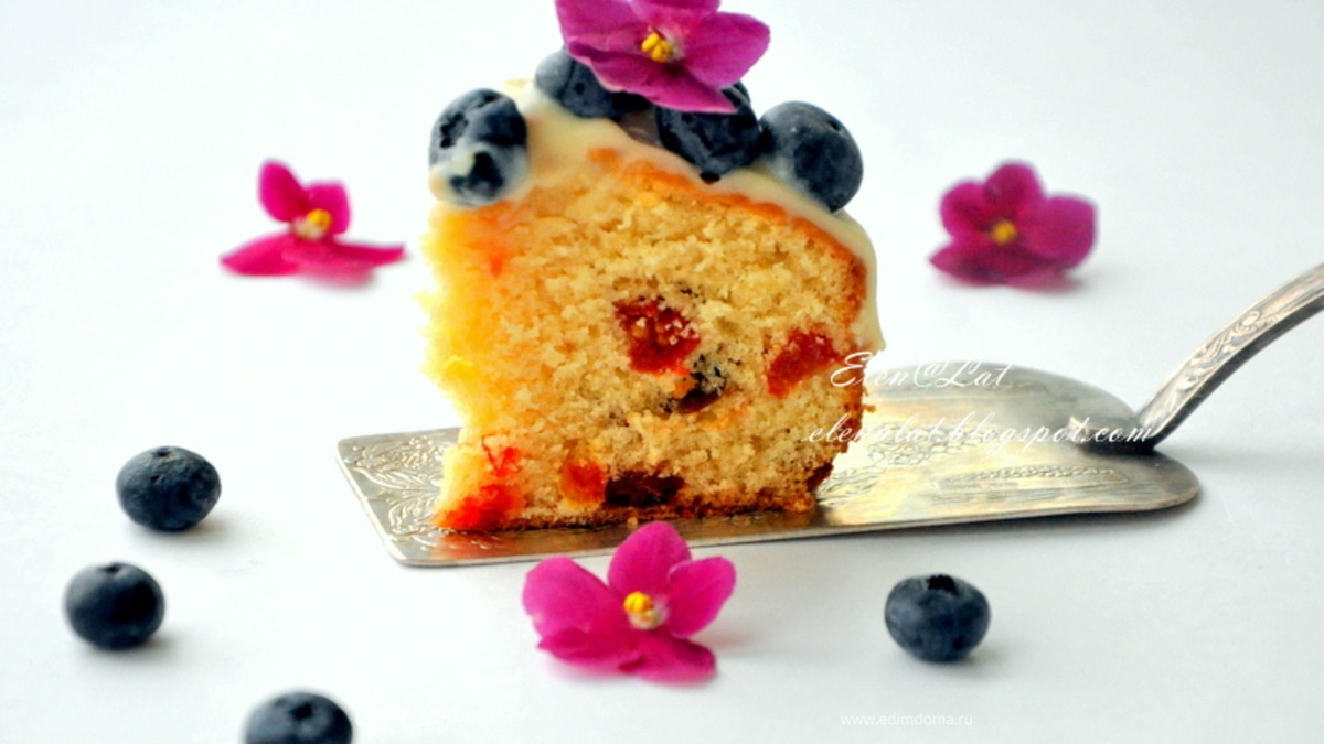 Праздник у каждого свой. И праздником можно считать и пятницу, и конец четверти и начало каникул. Праздником можно назвать тот день, когда после долгой болезни Вы со своим ребенком вышли на прогулку))) Или как у меня, случайный приездиз далека моей подружки. И вот по такому случаю, я выбрала нарядный и вкусный кекс. Я безумно люблю кексы. Причем любые. Каких я только не пробовала и все люблю)))) Самое для меня вкусное именно кекс с горячей чашечкой кофе. Вот и в прошлый выходной испекла вот такой незатейливый кексик. Он оочень сочный, мягкий, нежный с вкусными цукатами и насыщенной сливочной глазурью и все это богатство вкуса завершает кисленькие ягодки голубики! И чем мне нравятся вот такие кексы, тем, что можно взять любые цукаты и любые ягоды и каждый раз вкус будет меняться, а значит и каждый раз новый кекс!!!!!!!!!!