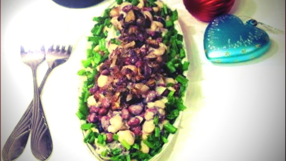 Салат из фасоли с белыми грибами и нежной йогуртовой заправкой