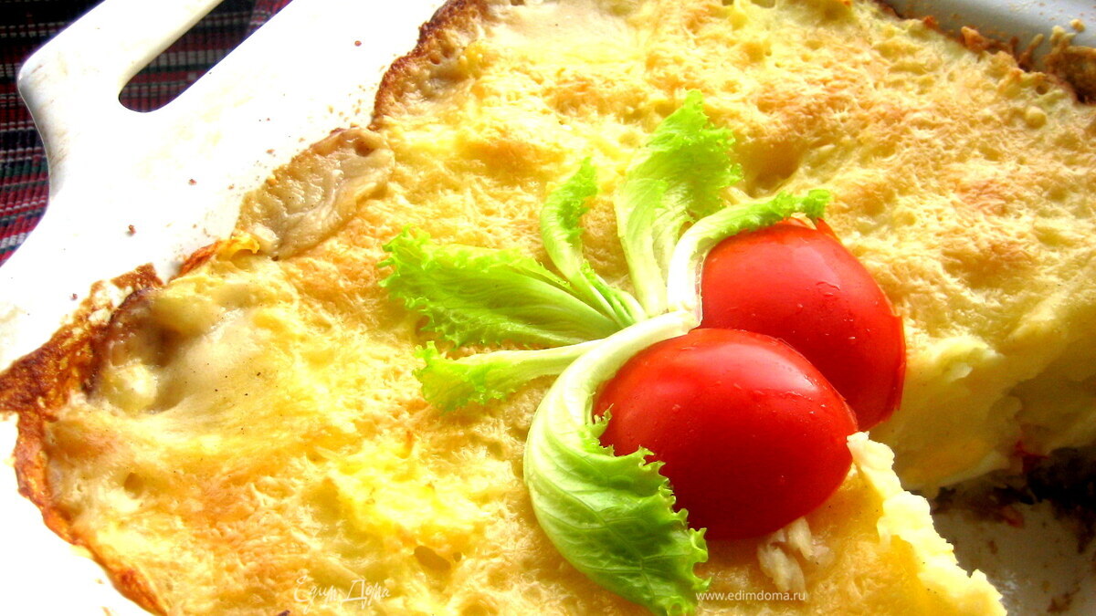 Рыбка, запеченная под соусом Бешамель и картофелем