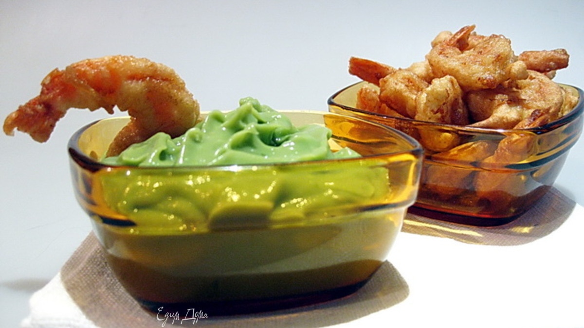 Креветки в кляре с гуакамоле