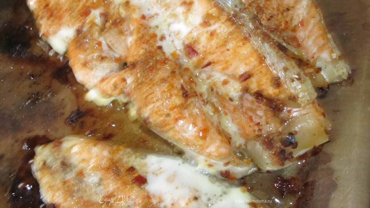 - Шаг 1Намазать специями рыбу дать мариноваться 30 мин., потом следует полить маслом и поставить в духовку на 25 минут.