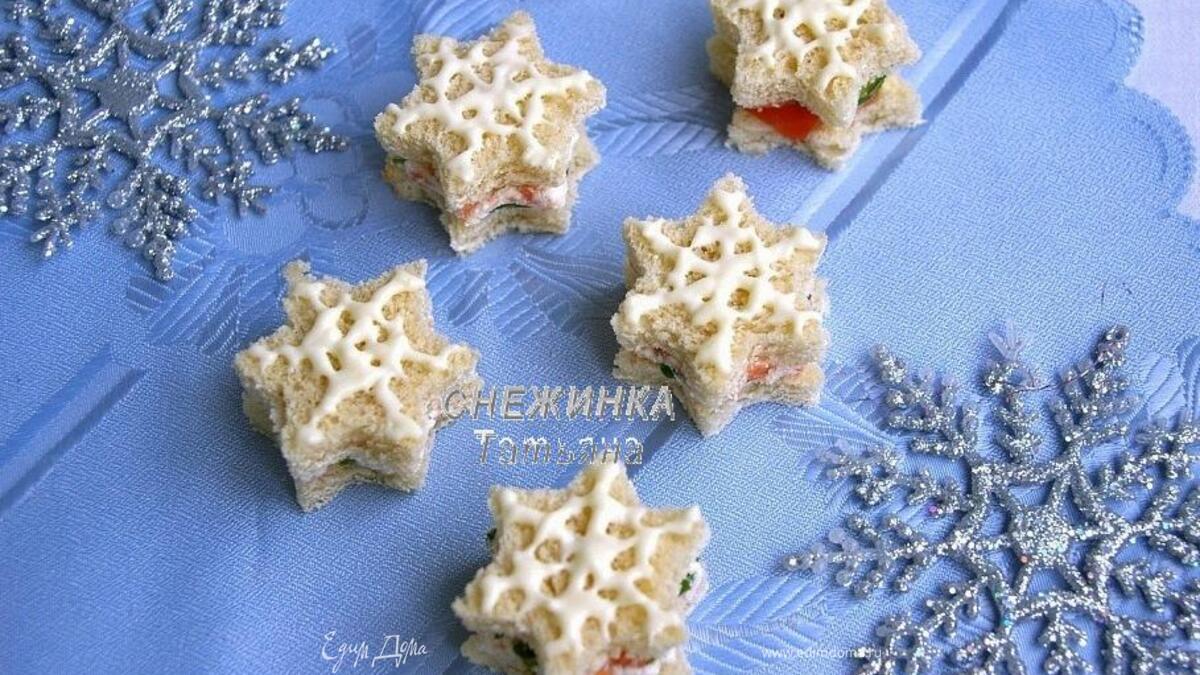 Такие тематические канапе со слабосолёной красной рыбой станут прекрасной заменой бутербродов на новогоднем столе, которые мы привыкли готовить, потому что это быстрая, вкусная и удобная закуска. И, как известно, под Новый год всё должно соответствовать атмосфере наступающего праздника, в том числе и блюда на столе. Конечно, их приготовление требует немного больше времени и чуть-чуть творческой фантазии, но это будет оправдано, потому что они станут настоящим украшением стола, к тому же приготовлению таких милых «снежинок» можно приобщить детей или всю семью![]()