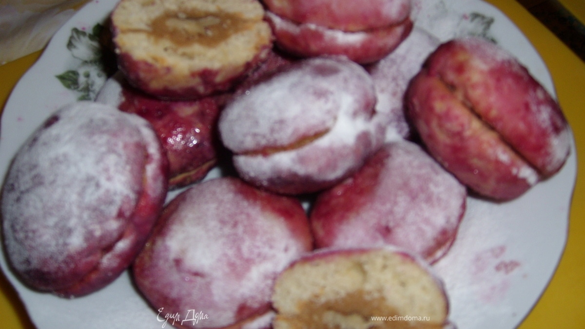 Из теста слепить половинки шариков,выложить их на смазанную маслом бумагу и выпекать в течение 10 минут так, чтобы они не успели стать твёрдыми.