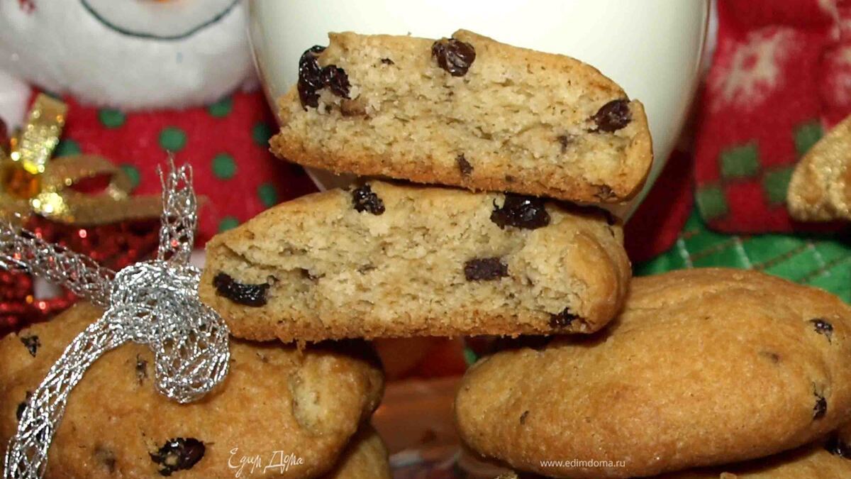 Печенье с шоколадной крошкой и изюмом в коньяке для Деда Мороза