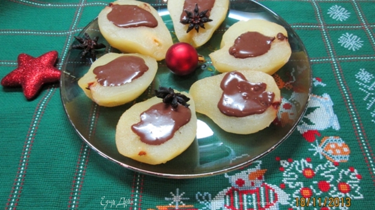 Груши в анисовом сиропе с шоколадным соусом