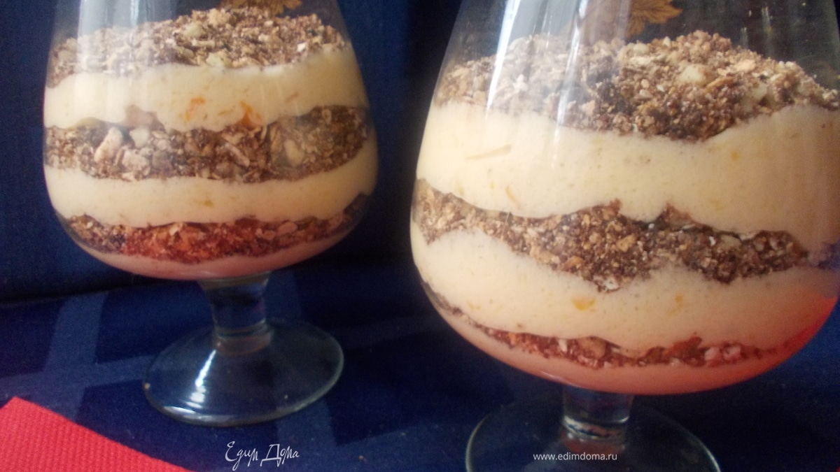 Я взяла бокалы для шампанского и коньяка, наполняла их с помощью кондитерского мешочка. Выкладываем слоями,чередую самбук и крошку.